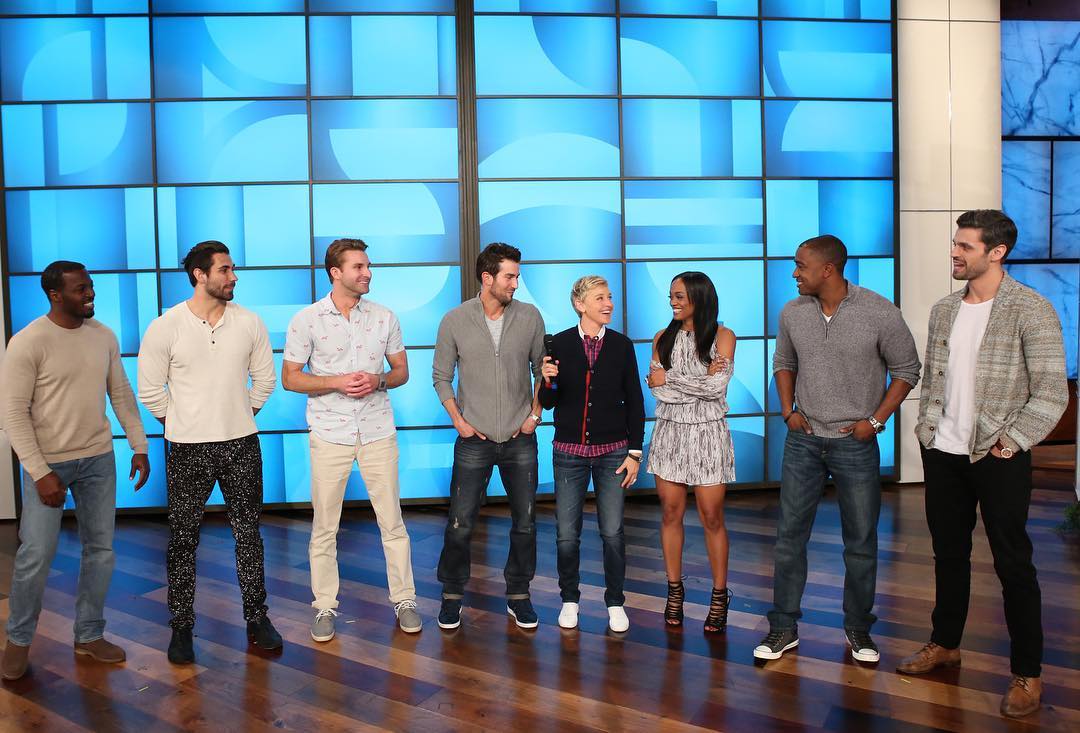 The Bachelorette star Rachel Lindsay is a week into filming Season 13, and a handful of lucky guys got to stop by The Ellen DeGeneres Show with her on a group date.