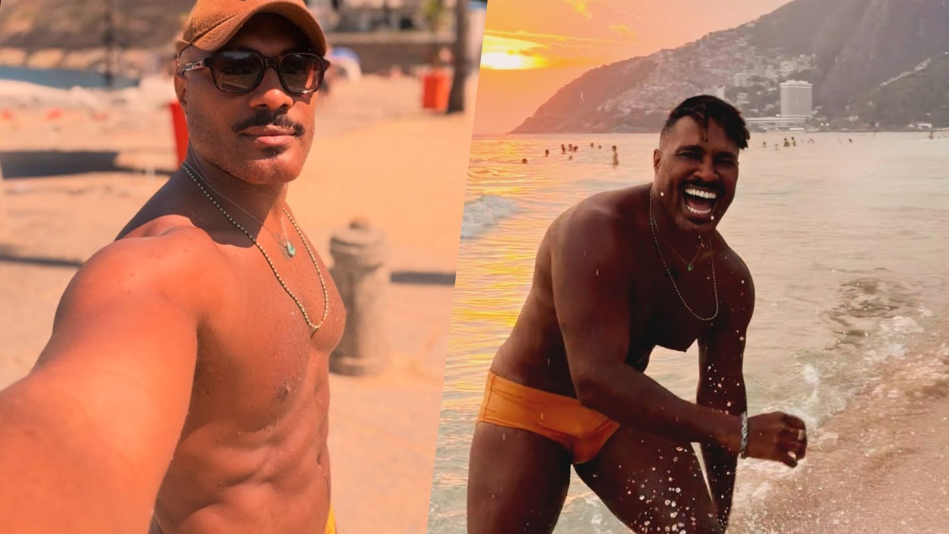 Fred Nicácio arranca elogios com fotos de sunga na praia