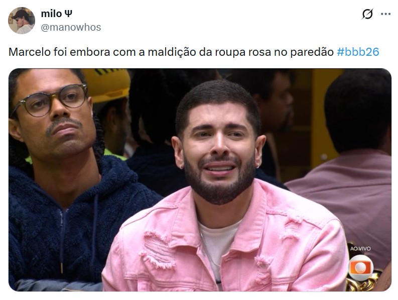 Nas redes sociais, os internautas repercutiram a Eliminação do ex-brother e relembraram a "maldição" da roupa cor-de-rosa, que também afetou Sarah Andrade nessa temporada. Veja abaixo! 👇