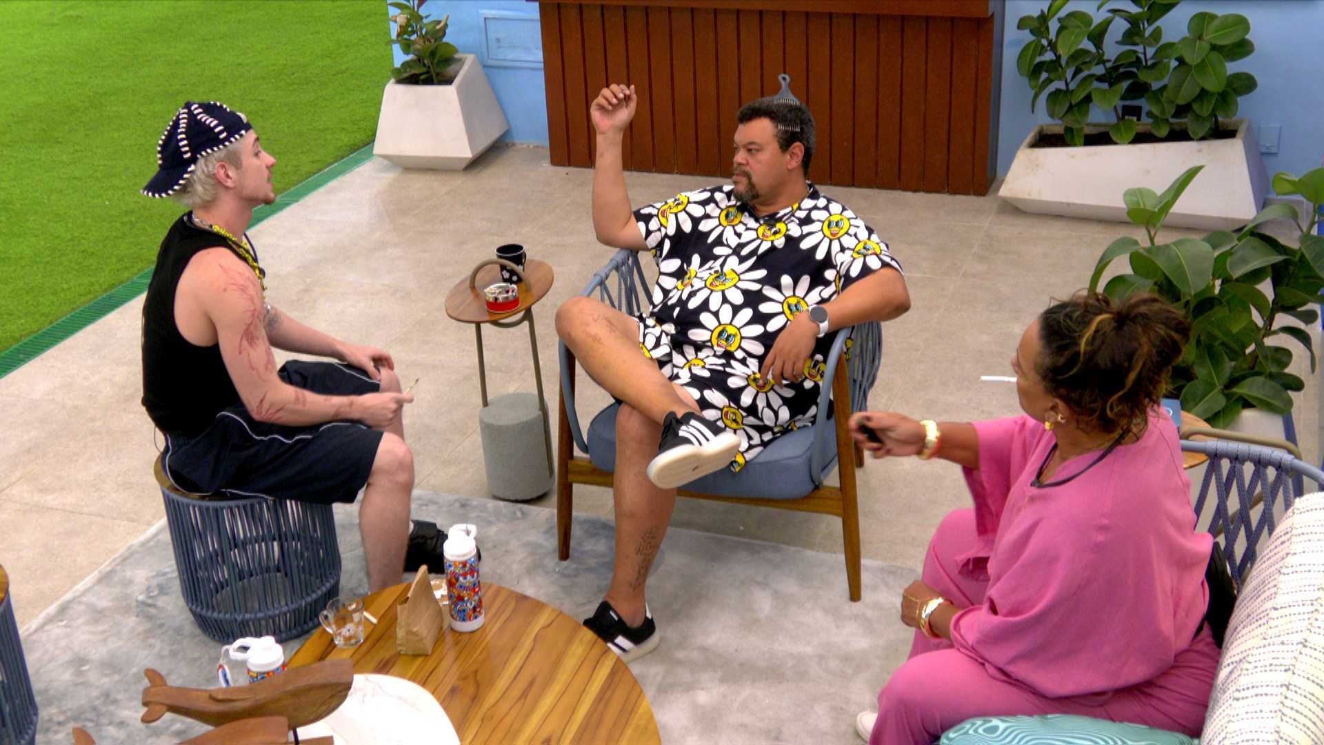 Momentos antes da Eliminação desta terça (10), Babu Santana e Juliano Floss conversam sobre a atitude de uma sister na casa, sem mencionar nomes. O ator acha que, apesar do público gostar de embates, os participantes não devem adotar uma postura combativa o tempo todo.
