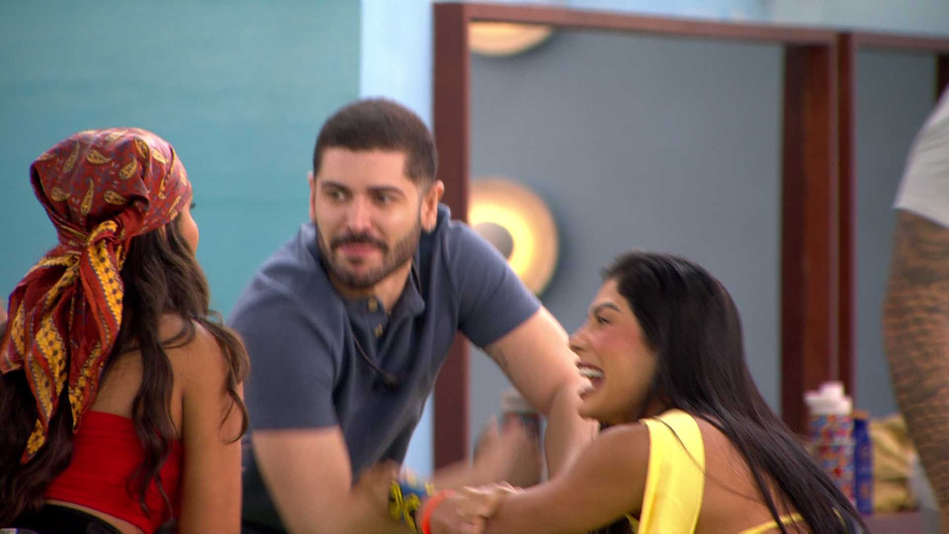 O papo segue quando Breno reage ao comentário: “eu acho que você vai ser meio que o Gil do Vigor”. Marcelo reage na hora: “de que?”, e Breno completa: “do pós BBB”. Marcelo corta, rindo: “pois acorde, aterrisse”. Breno insiste: “porque você é engraçado, fala bem, inteligente”, e Marciele entra na conversa: “também é venenoso, alegre, feliz”.