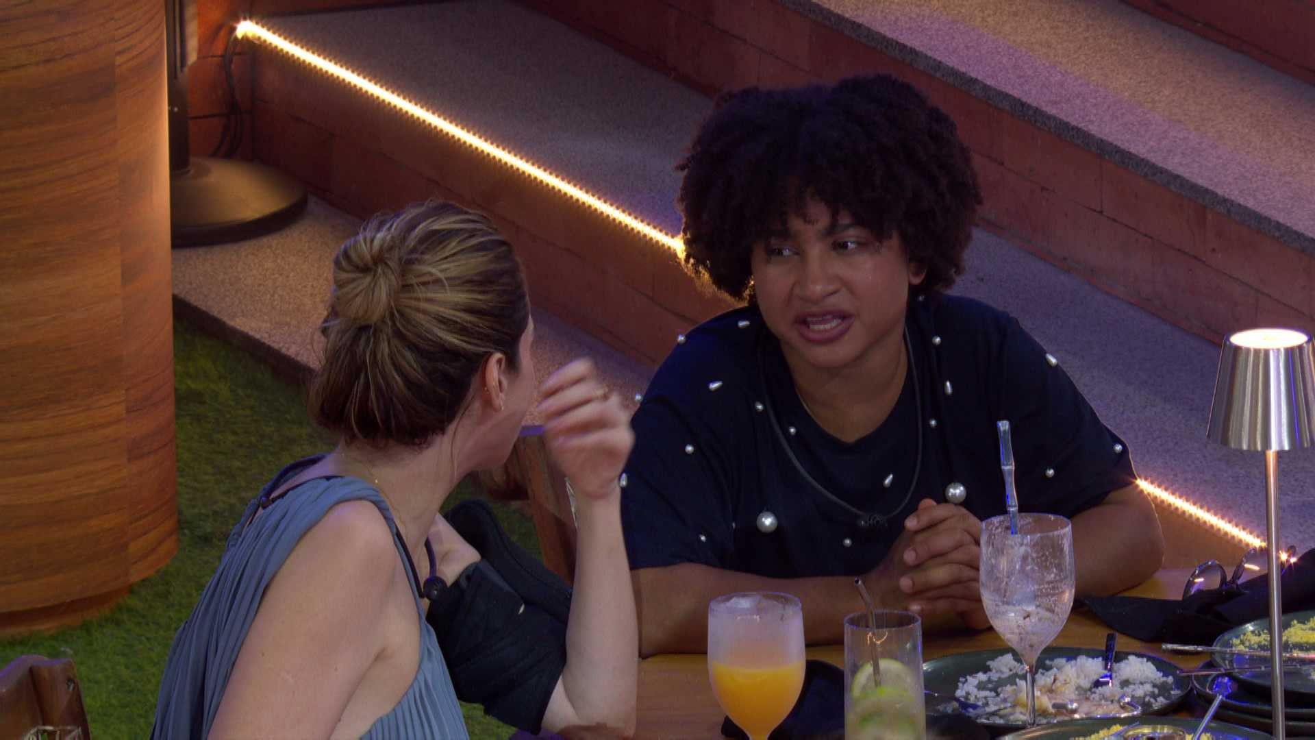 O papo segue, e Ana Paula explica sua escolha em Sarah Andrade: "Eu não tenho como fugir do meu embate. Ela me colocou no Monstro. Maxiane? Sarinha caça-enredo." "Na hora que mais foi falado, Edilson e Gabi, eles puxaram os mais fracos", opina Milena. "Medo", dispara a Veterana.