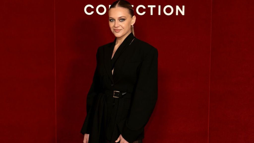 As seen in The Haute Couture Corner’s Instagram post, Kelsea Ballerini wore a Michael Kors SS26 RTW look styled by Rob Zangardi and Mariel Haenn. The outfit featured a structured black blazer cinched at the waist with a slim black belt, creating a sharp, tailored silhouette.