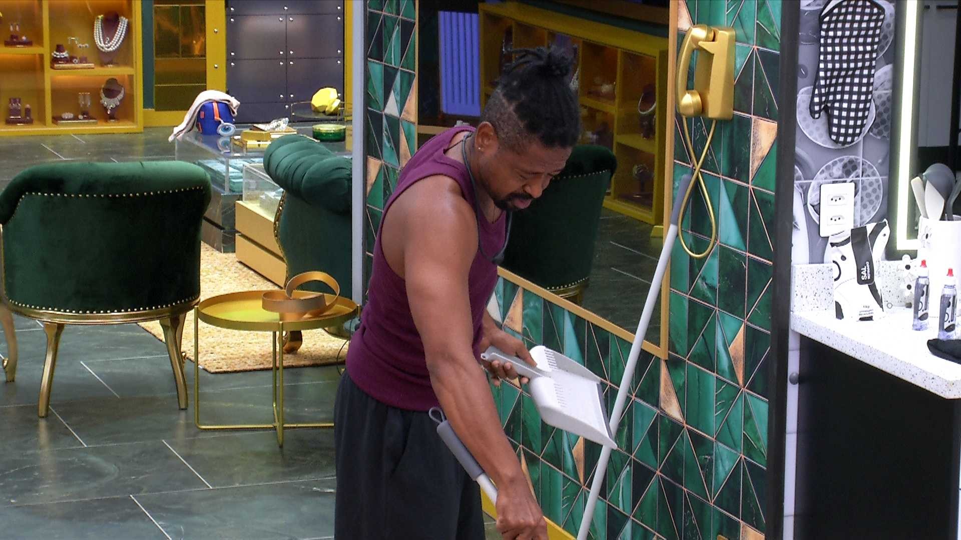 Edilson, que também está na cozinha, sai em defesa da colega de confinamento e se estranha com Boneco. "Ela estava falando com a amiga dela, não com você. O que tem a ver?", diz o ex-jogador. "Não se meta não. Tá procurando enredo agora que ganhou isso aí (vuvuzela)?", ironiza o produtor cultural.