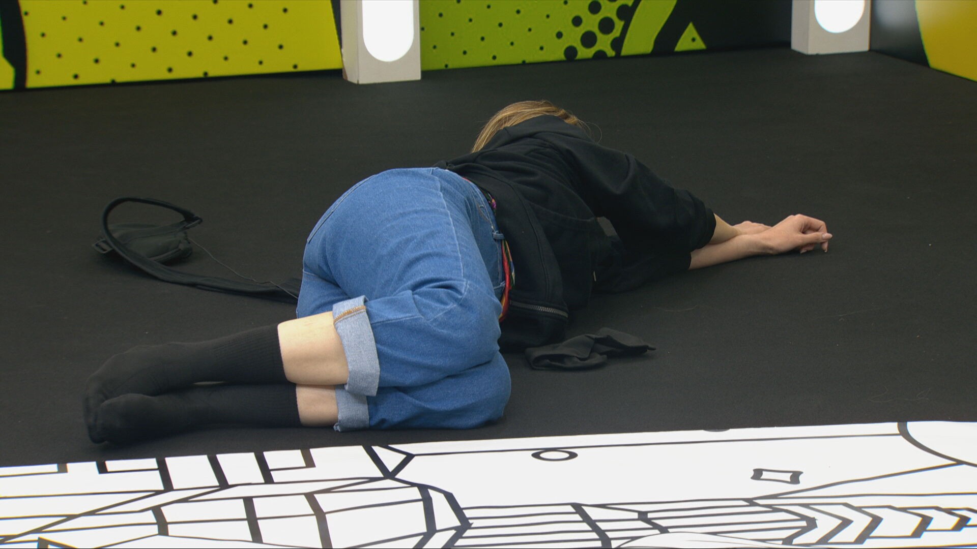 "Conhecendo ela, está fazendo piada da situação. Ela não deve estar triste, se você está achando que ela está", diz o dançarino. "Não é triste, ela saiu do Monstro ontem e hoje não vai dormir direito de novo", explica a recreadora.
