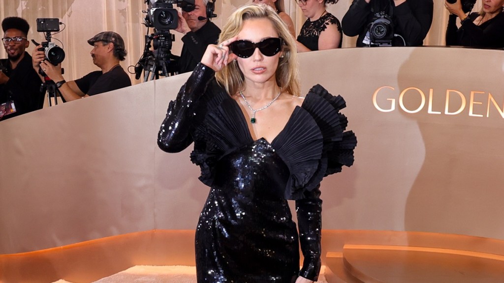 The elegantly draped top also had an open-sleeved style with an asymmetrical twist. She completed the look with matching high-waisted, stylishly fringed pants, making a strong impression. It’s quite safe to say that Cyrus leaned fully into the statement, turning what could have been novelty into a proper standout style moment. It’s bold, nostalgic, and unmistakably Miley, which is anything but plain and basic.