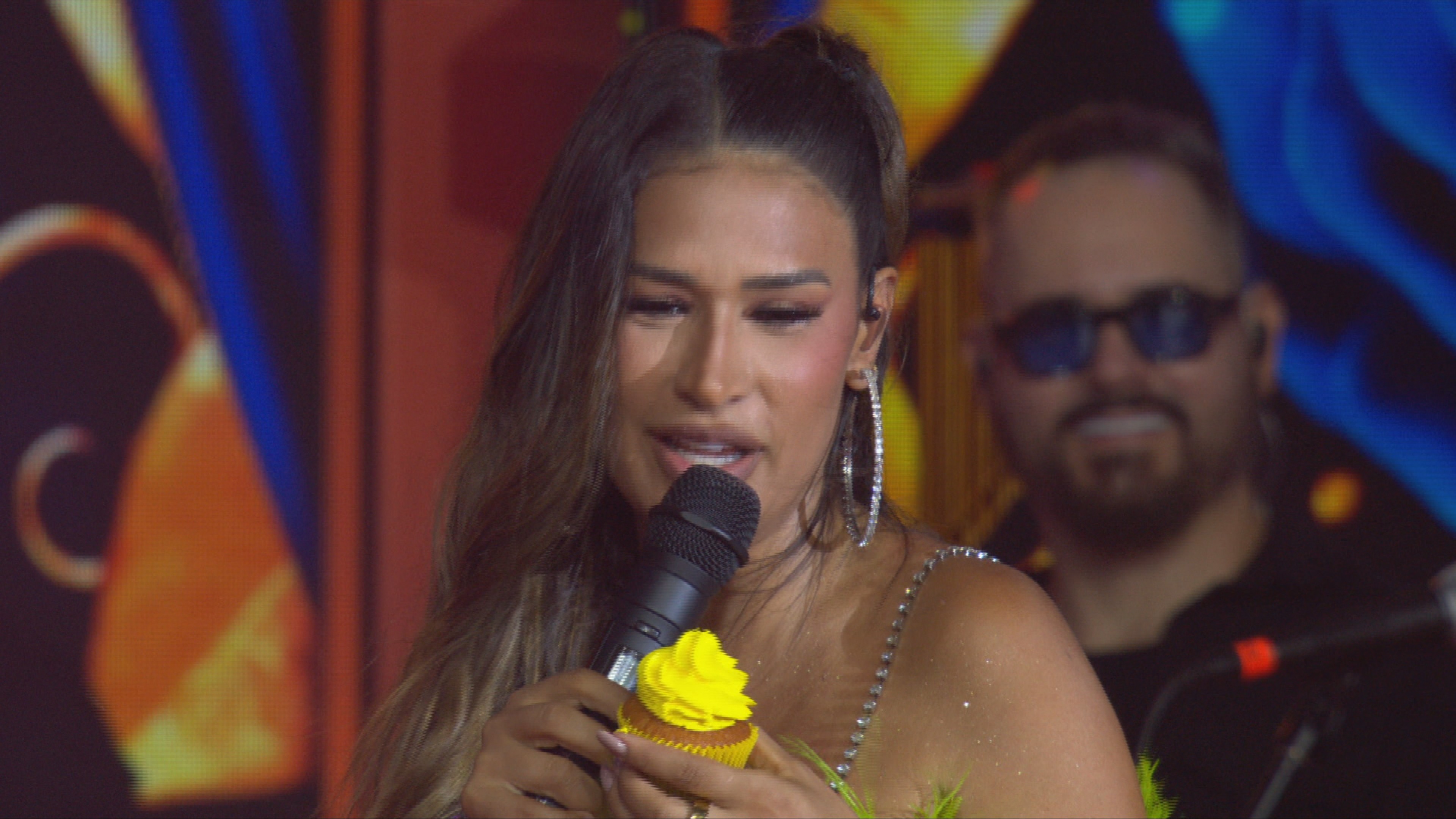 Em seguida, a artista reforça seu carinho pelos participantes: "É um prazer estar com vocês. Vocês perceberam que eu olhei para cada um e falei que amava vocês? Na verdade, eu estou super feliz de estar aqui nessa Festa linda", comenta.