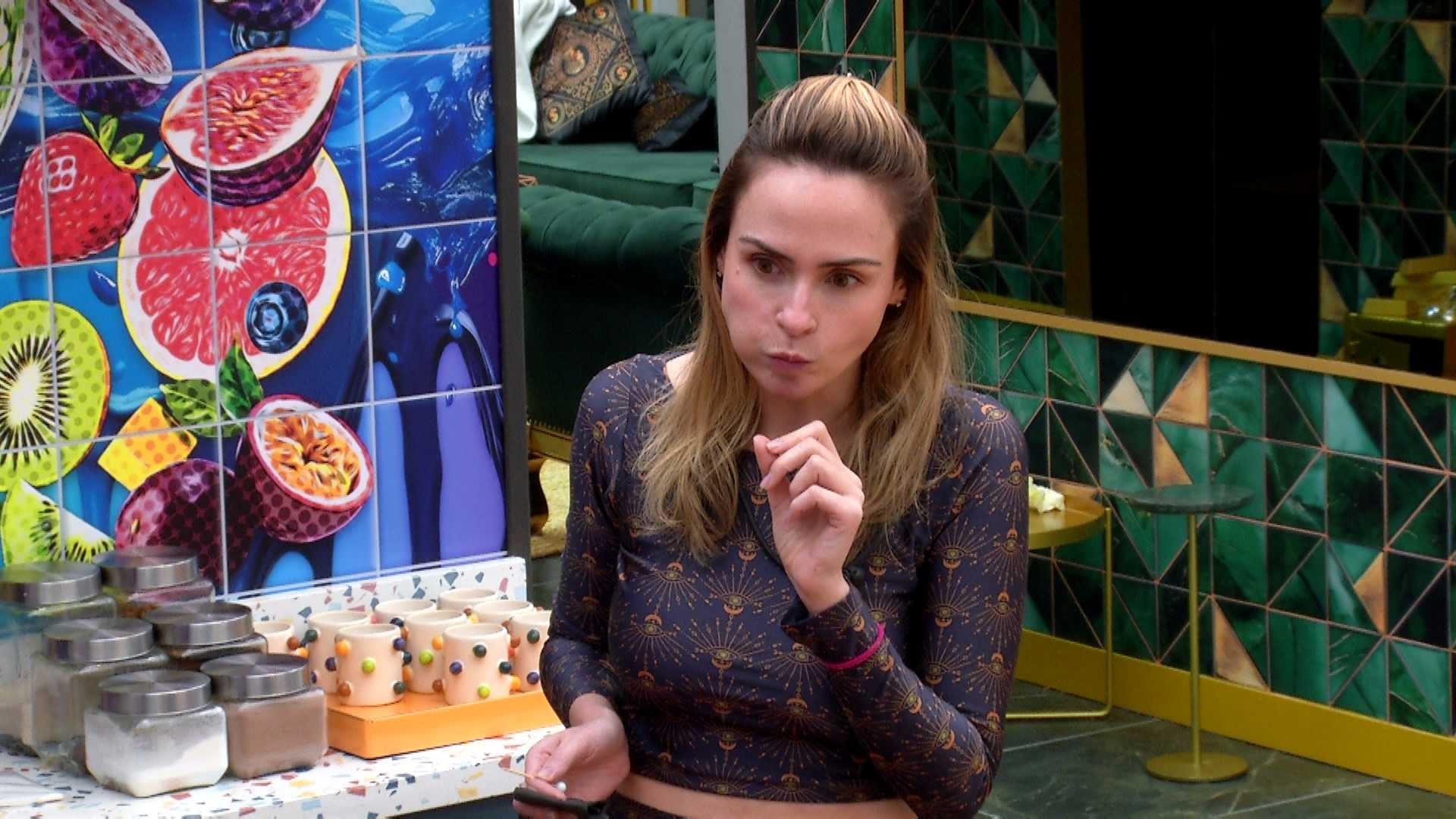 Na sequência, a mineira fala sobre essa possibilidade de ir para o Paredão. "Diferentemente de você, eu tenho muito respeito pelo Paredão", diz ela. "Mas você falou que quer ir várias vezes", afirma ele.