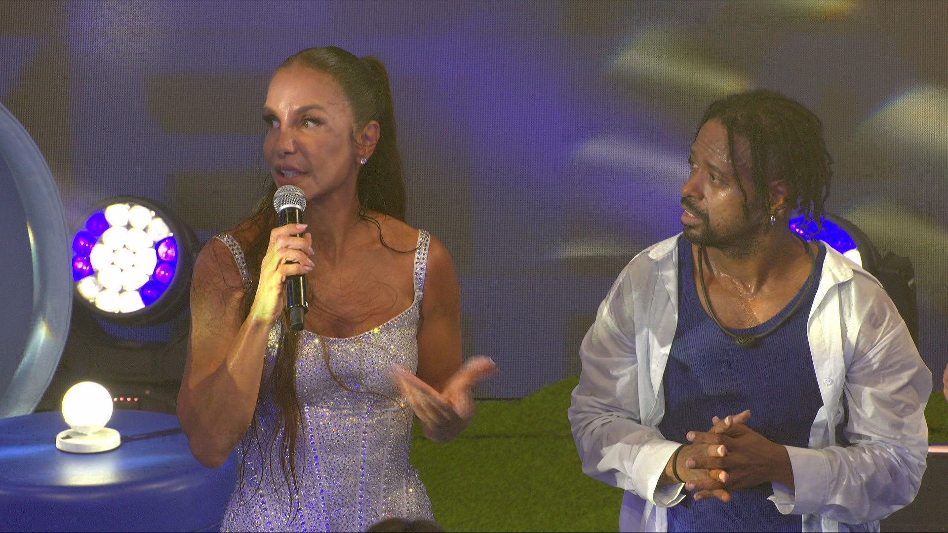 Durante a Festa de sábado (7) no BBB 26, Ivete Sangalo faz uma pausa no show para conversar com os brothers da casa. A cantora finaliza o cover de "Clareou", de Diogo Nogueira, e reúne os participantes em uma roda para dar conselhos.