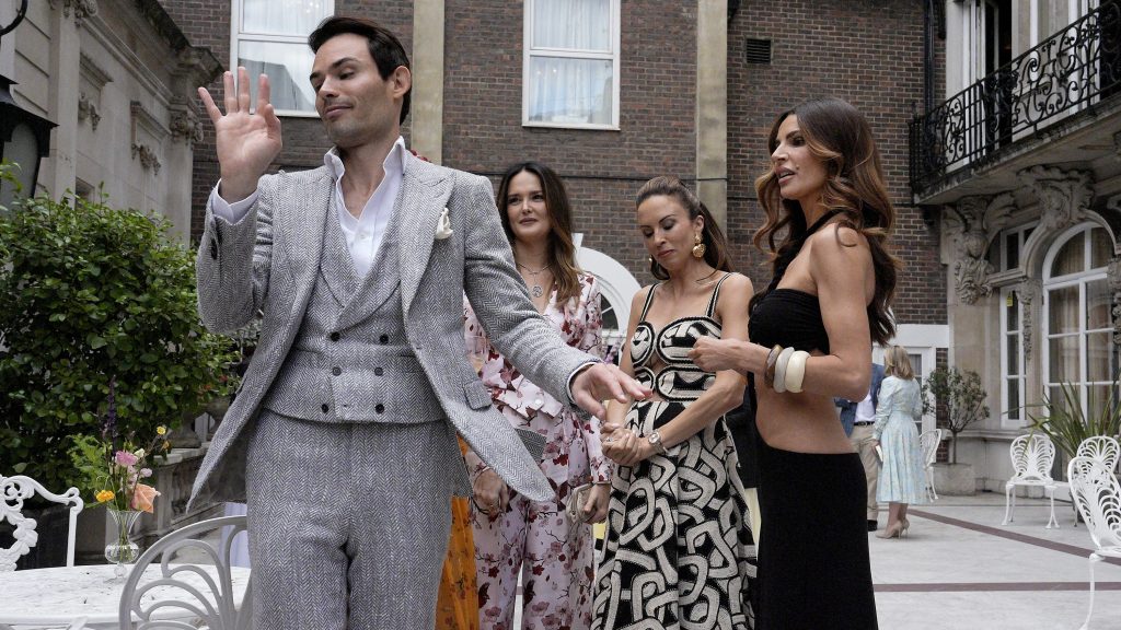 Stallion’s accessories included a Ruslan Baginskiy Baker’s Hat in Black, available for purchase on Balardi. It featured an embellished cross symbol and the brand’s initials. She was carrying a small baby pink top-handle bag that perfectly picked up the pink diamonds in the top’s argyle print.