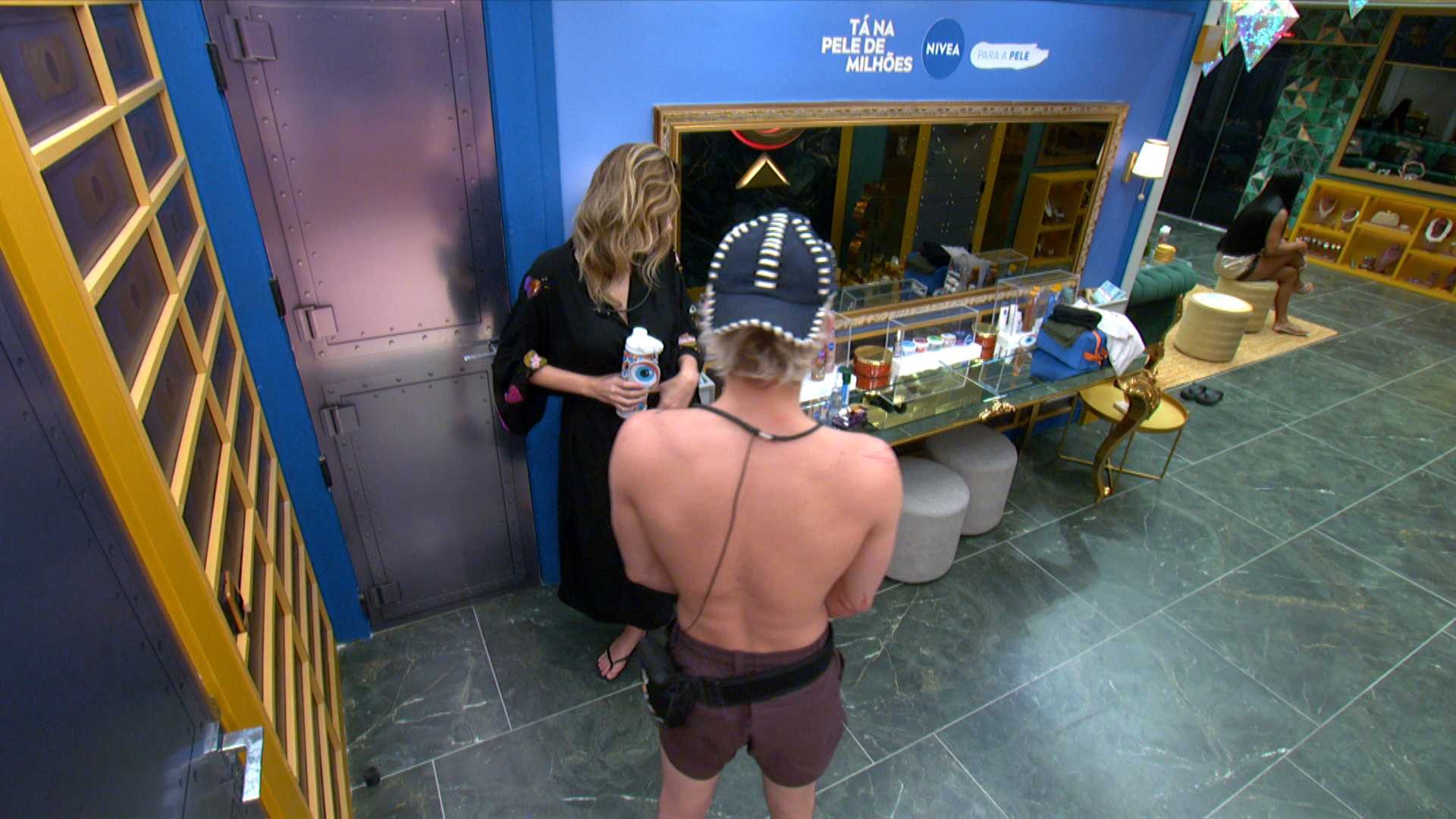 No cômodo, a atendente afirma que a pessoa que ganhar a disputa, não irá se dar bem. "Não, gente. Por quê?", questiona a Veterana. Com isso, Samira responde: "Paredão."
